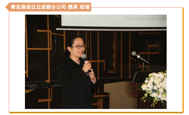 最后,本次會議支持企業(yè)青島海信日立空調(diào)營銷股份有限公司成都分公司技術(shù)部魏萊經(jīng)理上臺發(fā)言,并作全品類海信中央空調(diào)應(yīng)用分享。