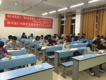 本次活動我們聯合省內高校,共舉辦了13場具有針對性的ODS知識講座,同時結合講座開展了“2015年四川省大學生保護臭氧層有獎知識競賽”。主辦方賽前提供《保護臭氧層知識宣傳冊》《制冷與健康》科普讀物,來自四川大學、電子科技大學、西南交通大學、成都信息工程大學等13所省內高校的450余名學生參加了此次競賽。通過知識競賽,旨在號召大學生提高保護臭氧層意識,激發青年學生的環保熱情,樹立綠色生活理念和消費觀念,共同營造綠色文化。