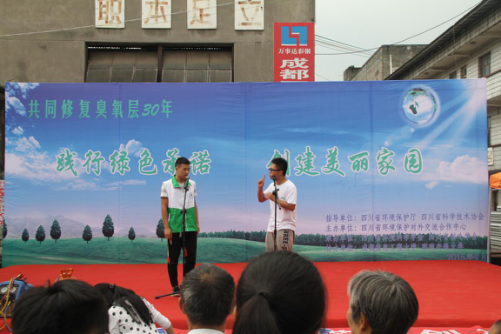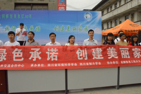 在四川省環境保護廳和四川省科學技術協會領導的正確指導下,四川省環境保護對外交流合作中心、四川省環境科學學會、四川省制冷學會、成都信息工程大學和西南交通大學相關領導和工作人員共同協作、積極配合,通過開展“知識講座、知識競賽、制冷設備舊貨市場大型環保公益宣傳”系列活動,向廣大市民普及了保護臭氧層、制冷與健康、如何處理廢舊空調和冰箱等相關知識,提高公眾的環保意識,樹立綠色消費及低碳生活的理念,號召了廣大市民“踐行綠色承諾、倡導綠色環保、創建美麗家園”,2015年四川省“9.16國際保護臭氧層日”宣傳周活動取得了圓滿成功。